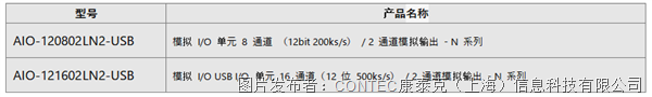 康泰克开发了两款产品,即 AIO-120802LN2-USB 和 AIO-121602LN2-USB,这是 USB 兼容模拟 I/O N 系列的后继产品,并从今天开始接受订单。